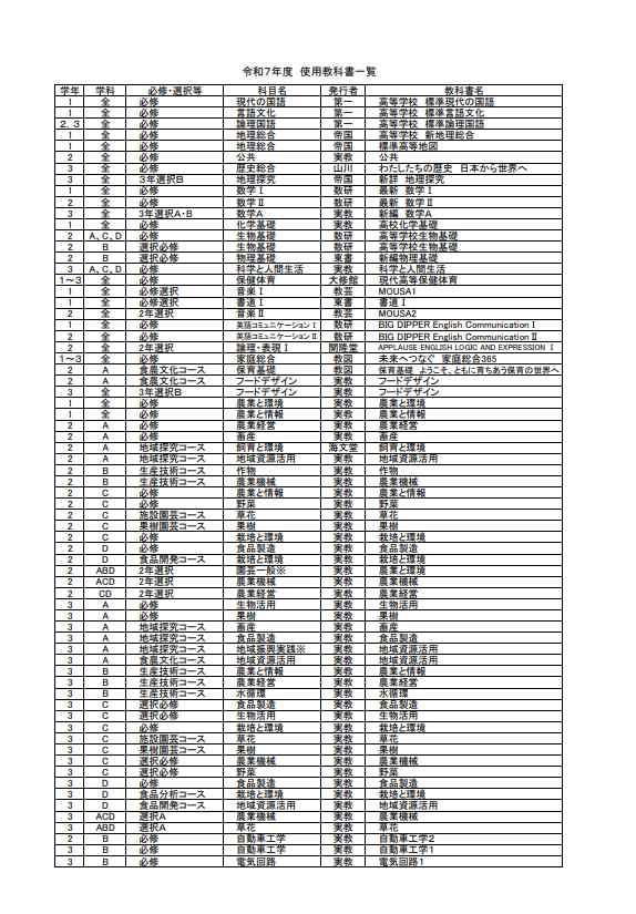 ◆令和7年度 使用教科書一覧