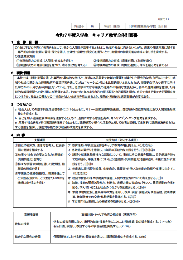◆本校におけるキャリア教育計画
